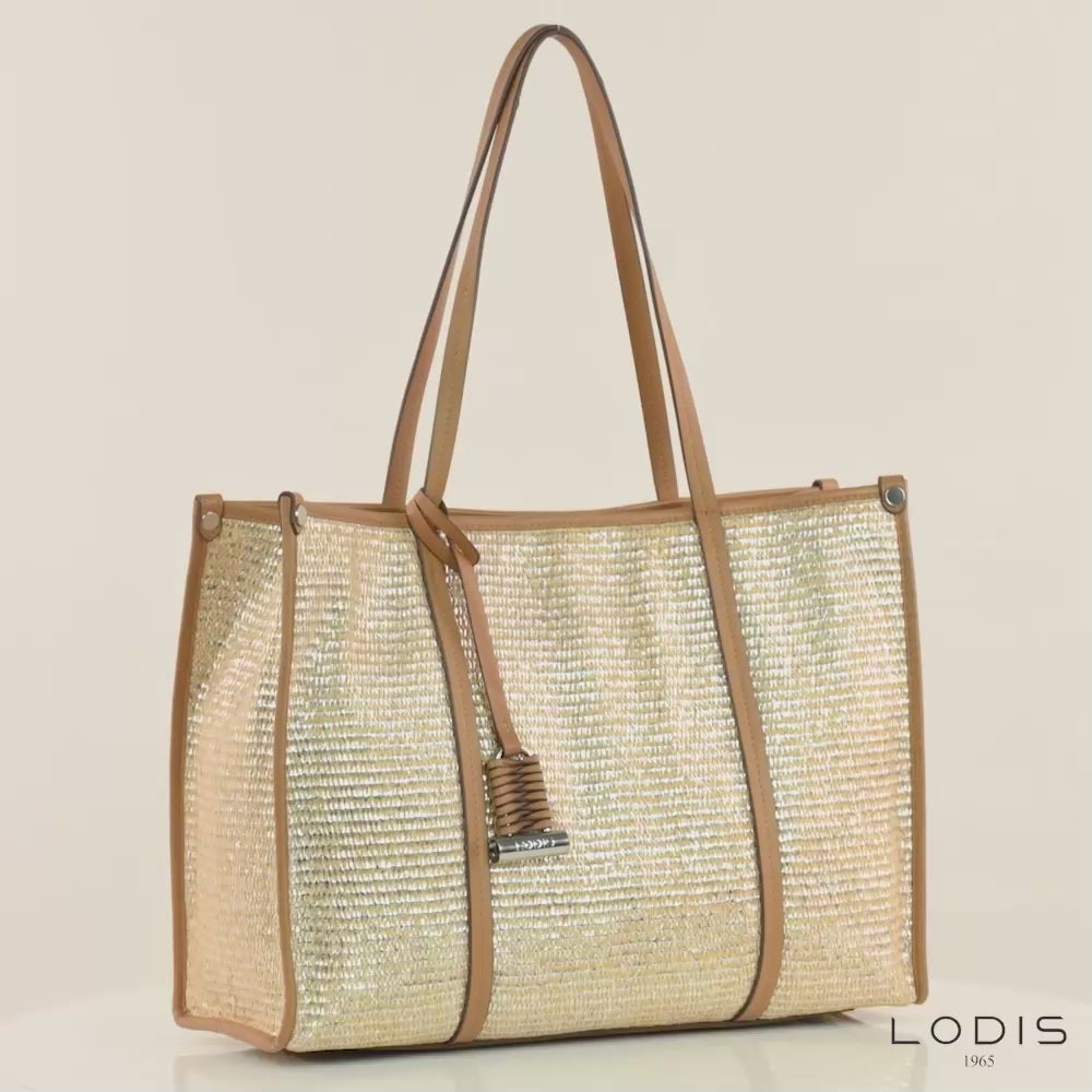 Material: Metallic Coated Raffia / Polished Leather (100% Genuine Leather)
